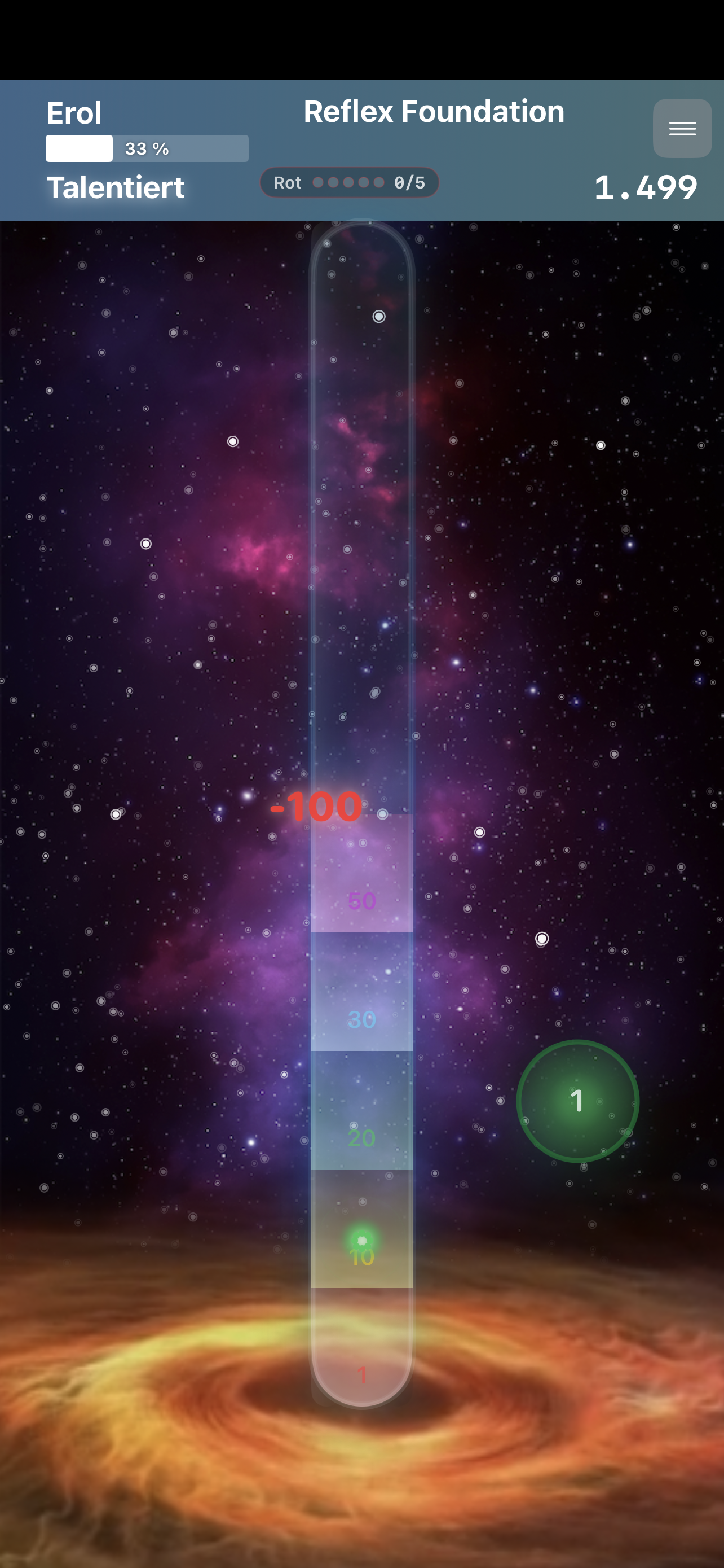 • Klick auf Button/Raumtunnel ohne Atom im Raumtunnel = -30 Punkte (kein Anti-Atom wird abgeschossen)