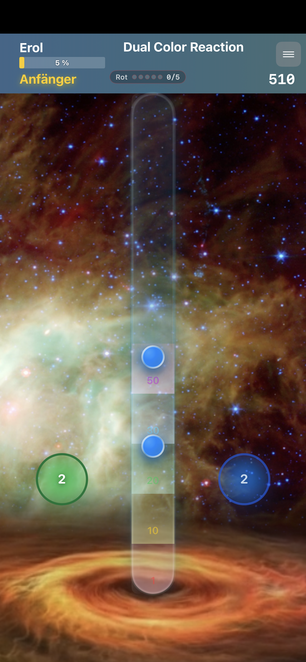 • Wenn du ein rotes Atom abschießt, wird der Zähler wieder auf 0 gesetzt.
